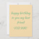 Diese Karte wärmt das Herz eines sensiblen Souls, Ihre Karte spricht Ihre Nachricht an den ehrenwerten Empfänger jedes Mal, wenn sie sie wieder lesen. Kartendetails Vordere Nachricht: Glückliche Geburtstagsnachricht: Geburtstag zum Geburtstag für meinen besten Freund, den du ändern kannst