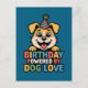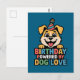 Eine fröhliche Geburtstagsillustration mit einem glücklichen Cartoon-Hund, der eine bunte Partyhut trägt und einen spielerischen Ausdruck zeigt. Die fettgedruckte, mehrfarbige Typografie und der fröhliche Stil erzeugen eine unterhaltsame Feierstimmung, die sofort eine Verbindung zu Hunde-Liebhabern herstellt. Dieses Design erfasst die Idee, dass Geburtstage wirklich von Hundeliebe, Glück und positiver Energie angetrieben werden, was es perfekt für jeden macht, der mit seinem pelzigen besten Freund feiert.