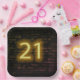 Beleuchtetes Neonschild aus Marquee an einer dunklen Ziegelwand zum 21. Geburtstag.