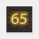 Beleuchtetes Neonschild aus Marquee an der dunklen Ziegelwand zum 65. Geburtstag.