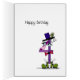 Ein lila Zehn Nummer vier trägt kräftig grüne Schuhe, eine rote Bogen-Krawatte mit Punkten und einen schwarzen Top-Hut.