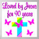 Feiern 90 Jahre Liebe und Frieden von Jesus Christus. Erleben Sie dieses Christliche und spirituelle 90 Jahr mit diesem schönen und lebendigen Regenbogen, Schmetterling, und kreuzen Sie das 90. Geburtstagsdesign auf T-Shirts, Tasse, Tragetaschen und Geschenken. Ihr geistiger und gottliebender 90-Jähriger wird dieses einzigartige und eine von einem freundlichen, 90. Geburtstagsgeschenk bewundern, das sie jedes Jahr bewundern wird. Feiern Sie 90 mit einem ermutigenden Glauben gefüllt Design. Gott tanzte den Tag, an dem dieser schöne 90-jährige geboren war.