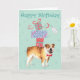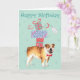 Herzlichen Glückwunsch zum Geburtstag mit diesem niedlichen Design mit einem niedlichen Bulldog, der einen Stapel Geschenke auf seinem Rücken ausbalanciert.Text lässt sich leicht ändern; klicken Sie einfach auf Anpassen.