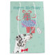 Glückliche Geburtstagsgrüße mit diesem niedlichen Design mit einem niedlichen Dalmatiner, der einen Stapel Geburtstagsgeschenke auf der Nase balanciert. Text kann leicht geändert werden; klicken Sie einfach auf Anpassen.