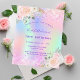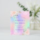Eine mädchenhafte und weibliche 18. (oder jedes Alter) Geburtstagsfeier Einladung. vorne: Ein Regenbogen, holografischer Hintergrund in lila, rosa, minzgrün, Rose gold. Glitzer mit rosa Imitaten in Rosa, Glitzern. Personalisieren und fügen Sie einen Namen und Party-Details hinzu. Der Name wird mit einem handgeschriebenen Stilskript geschrieben, lila Buchstaben.