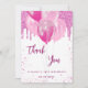 Eine weiße Hintergrundfarbe. Mit rosa Imitaten Glitzer, Glitzern, pastellrosa und heißen rosa Ballons. Auf der Vorderseite große Hand Schrift und der Text: Danke. Zurück: Personalisieren Sie Ihre Dankeschön Notiz und Name. Der Name ist mit einem modernen handgeschriebenen Stilskript geschrieben.