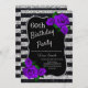 Geburtstag Silver Black Stripes Glitzer Lila Rose Einladung