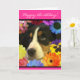 Foto eines Welpen mit süßen Augen, umgeben von Blume." Personalisieren Sie Ihre Nachrichten. Fotografie von Maria Santos (Lusinhas do Sul)