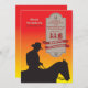 Die Silhouette eines Cowboys gegen einen Sonnenunterganghimmel stellt diese hübsche Karte her. Die Wortplatte kann zu jedem möglichem Standort geschleppt werden, gemacht worden größer oder kleiner (+-) oder beseitigt, dieses eine vielseitige Einladung machend.