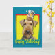 Feiern Sie einen Geburtstag mit dieser wunderlichen Airedale-Hundegruß-Karte. Wenn ein kleiner Kuchen auf ihm balanciert ist, ist Kopf, ist dieser Entwurf sicher, ein Lächeln zu holen und kichert! BTW, dieser Entwurf hat einige Versionen, mit verschiedenen Hintergrundfarben. Es gibt auch eine Einladung zu einer Partyversion.