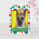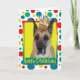 Feiern Sie einen Geburtstag mit dieser wunderlichen Dogge-Hundegruß-Karte. Wenn ein kleiner Kuchen auf ihm balanciert ist, ist Kopf, ist dieser Entwurf sicher, ein Lächeln zu holen und kichert! BTW, dieser Entwurf hat einige Versionen, mit verschiedenen Hintergrundfarben. Es gibt auch eine Einladung zu einer Partyversion.