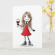 Geburtstags-Strichmännchen-Mädchen mit Weinglas Karte