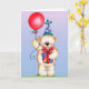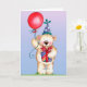 Mit diesem niedlichen Bären mit einem Ballon und einem Geschenk zum Geburtstag.