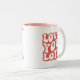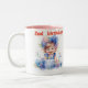 Diese rosa Tasse aus dem 2. Jahrhundert kombiniert kursiven und gedruckten Text mit einer quadratischen Grafik, wie sie in der Mitte ein Kind oder eine Puppe mit flauschigen Haaren zu sein scheint. Das Design des Shirts lässt vermuten, dass es als lässige Kleidung oder als Teil eines besonderen Anlasses zum 2. Geburtstag Schlamms für Kleinkinder gedacht sein könnte.
