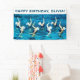Kreativ, leicht zu personalisieren, Geburtstagsparty, Schwimmveranstaltung oder Party-Banner mit Schwimmbad und synchronisierten Schwimmern Wasserfarbe. Zum Anpassen bearbeiten Sie Text, um Namen hinzuzufügen.