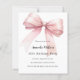 Ein weißer Hintergrund, verziert mit einer großen rosa Schleife. Personalisieren und einen Namen sowie Party-Details hinzufügen.