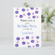 Ein niedliches Design mit königsblauen Tasten und kleinen rosa Bögen auf weißem Hintergrund. Schriftart in Schwarz und lila. Passen Sie Ihre Party-Informationen nach Wunsch an.