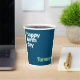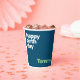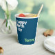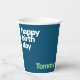 Happy Geburtstag minimale moderne Party Papier Becher Salbei Grün und Marineblau leicht personalisiert werden. Name Personal Schriftart Stil, Größe und Farben können geändert werden. Matching-Elemente verfügbar.