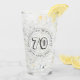 Geburtstagsfeier Glas mit dem Namen der Person und das Datum ihres Geburtstages. Ein Glas für jemanden, der 70 ist. Stil der Kontur.