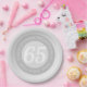 Gedenkfeier Geburtstagsfeier Party Platte mit dem Namen der Person, und das Datum ihres Geburtstages. Ein Party für jemanden, der 65 Jahre alt ist.