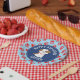 Blaue und rote Geburtstagsfeier mit Pfotenabdruck