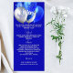Geburtstagsfeierprogramm und Menü. Personalisieren und fügen Sie einen Namen, Alter und Ihr Programm. Ein königlich blauer Hintergrund. Weiße Buchstaben. Zurück: Fügen Sie die Feier Dinner Menü.