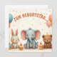 Ein zauberhaftes Geburtstagsmotiv mit einem fröhlichen Elefanten, einem niedlichen Hasen und einem lachenden Bären - umgeben von Ballons, Cupcakes und Konfetti. Dieses Bild die freundliches Magie und Freundschaft.