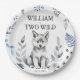 Geburtstagsgeschirr aus zwei Wilden Wolfen, personalisierte Teller aus Party, niedlicher, flauschiger Wolf bewölkt Blätter für eine Geburtstagsparty aus Wolfswäldern