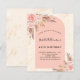 Für eine moderne, elegante 40. Geburtstagsparty (oder jedes Alter). Ein Bogenrahmen und eine Rose mit goldenem Marmor als Hintergrund. Die Einrichtung ist mit Rose-Gold und rosa Blumen, Rose und Pampas-Gras dekoriert. Personalisieren und fügen Sie einen Namen und Details.