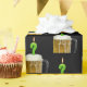 Grüne Frage kennzeichnet Geburtstagskandle in Tasse von Bier auf schwarz