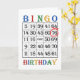 76. Geburtstagskarte. Sage einen Glückwunsch zum Geburtstag zu einem Bingo-Spieler mit einer Bingokarte. Das Alter ist rot eingekreist. Ein Bingo-verrückter Spieler bekommt einen Riesenkick aus dieser Karte! Copyright Norma Cornes.