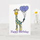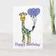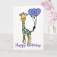 Niedliche kleine Giraffe mit einem Ballon. Sie können das Alter ändern, um es dem Geburtstag anzupassen. Schwarz innen.