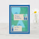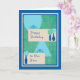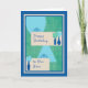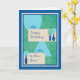 Dieses Design hat Kisten, Quadrate, Kreise und Dreiecke, alle von winzigen Punkten umgeben und mit kleinen Vasen von Blume geschmückt. Dieses Modell kann aufgrund des einzigartigen Designs für Männer oder Frauen gekauft werden. Die Farben auf der Karte sind blau, grün und beige.
