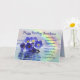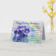 Schöne blaue Vergissmeinnichte warfen hilflos auf einem See mit einem Regenbogen hinten. Ein schöner Vers schließt diese einzigartige Karte tadellos ab.