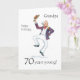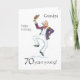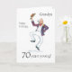 Eine 70. Geburtstagskarte für einen Großvater mit einem älteren Mann in einem gestreiften Blazer tanzen und seinen Boaterhut heben! Aus einer Aquarellbild von Judy Adamson. Auch passende Tasse und Lesezeichen sind verfügbar.