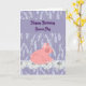 Geburtstagskarte für Haustiere in einem Lavendel-Weiß-Design mit Blumenkräutern in Weiß auf Lavendeluntergrund. Das rosa Schwein liegt auf einem Imitat Spitzen. Kann für Erwachsene oder Kinder verwendet werden. Die Wörter auf der Innenseite können geändert werden. Dank Pixabay und Creative Fabrica für einige Elemente im Design
