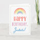 Sie nennen Ihre Großmutter Jadati, nicht Oma. (Jadati bedeutet Großmutter auf Arabisch.) Stellen Sie sich vor, wie aufgeregt Jadati sein wird, eine Geburtstagskarte zu erhalten, die speziell an sie adressiert ist! Ihr Jadati Liebe auch das niedliche, wasserfarbene Boho Regenbogendesign, das "Glücklicher Geburtstag Jadati!" sagt. Machen Sie diese Karte anpassbar! Klicken Sie auf "Design bearbeiten", "Unten/Rechts: Text & Bilder", "Text" und "Text hinzufügen", um Ihre eigene, personalisierte Nachricht an Jadati zu schreiben!
