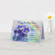 Schöne blaue Vergissmeinnichte warfen hilflos auf einem See mit einem Regenbogen hinten. Ein schöner Vers schließt diese einzigartige Karte tadellos ab.