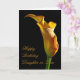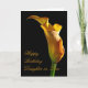 Von der Seite leuchtet eine prächtige goldene Arumlilie. Eine perfekte Blume, um Ihre Geburtstagswünsche zu vermitteln.