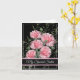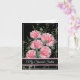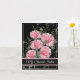 Die Geburtstagskarte wird mit schwarzem Hintergrund und hübsch rosa Nelken angezeigt. Die Karte hat eine spezielle Meldung im Inneren. Passen Sie diese Karte an oder kaufen Sie, wie es ist. Bild
