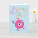 Hübsche Geburtstagskarte mit einem kleinen, farbenfrohen Monster für Kinder. Humorvolles Thema. Farbgestaltung. Innen mit einer Zeichnung zum Ausmalen.