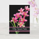 Geburtstagskarte mit schwarzem Hintergrund und hübschen rosa Orchideen.Passen Sie diese Karte an oder kaufen Sie, wie es ist.