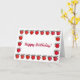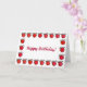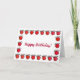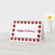 Alles Gute zum Geburtstag auf einer weißen Karte im Landhausstil mit einem Rand von roten Äpfeln. Holzschnitt und Aquarelleffekt von Indie Artist WindyDesign.