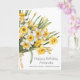 Diese elegante Geburtstagskarte zeigt einen Wasserfarbenstrauß aus Narzissen und Jonquillen, den offiziellen Geburtsblumen im März, die Erneuerung, Freude, Hoffnung und Neuanfänge symbolisieren.
