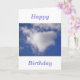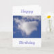 Herzförmige Wolke in blauem Himmel mit blauem Text: "Happy Birthday"