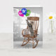 Spielende Tischtenkatze stehend auf einem Holzrocksessel und das Streben nach einem farbenfrohen Ballonbuquet zum 28. Geburtstag. Die Altersnummer kann geändert werden.
