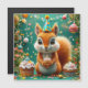 Charmantes Eichhörnchen mit festlichem Hut, umgeben von lebhaften Dekorationen und bunten Kuchen in einem spielerischen, fröhlichen Rahmen.