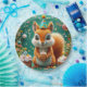 Charmantes Eichhörnchen mit festlichem Hut, umgeben von lebhaften Dekorationen und bunten Kuchen in einem spielerischen, fröhlichen Rahmen.