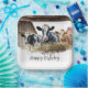 Drei Aquarellkühe mit Scheune fütterte durch Heuschrecken, die zum Geburtstag mit Text gefüllt sind. Text ist bearbeitbar.