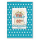 Machen Sie einen schönen Geburtstag möglich. Feiern Sie mit jemandem am 80. Geburtstag mit dieser Karte. Hier ist ein Geburtstagskuchen auf weißem und blau gepunktetem Hintergrund, beleuchtet mit 80 Kerzen.